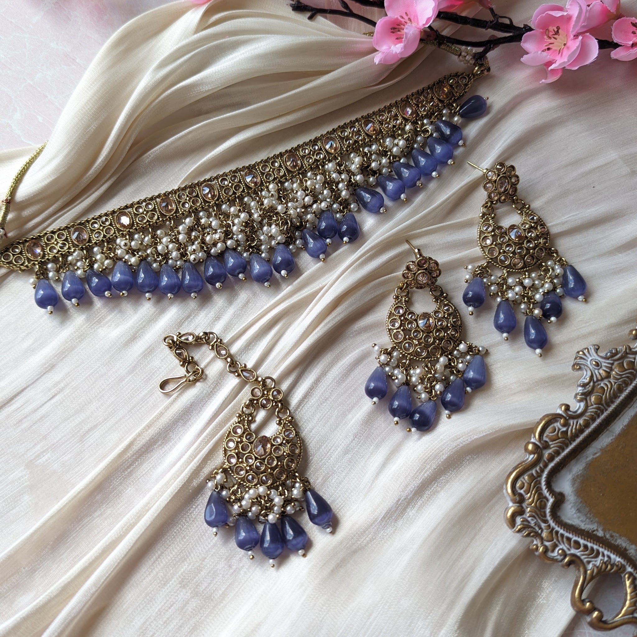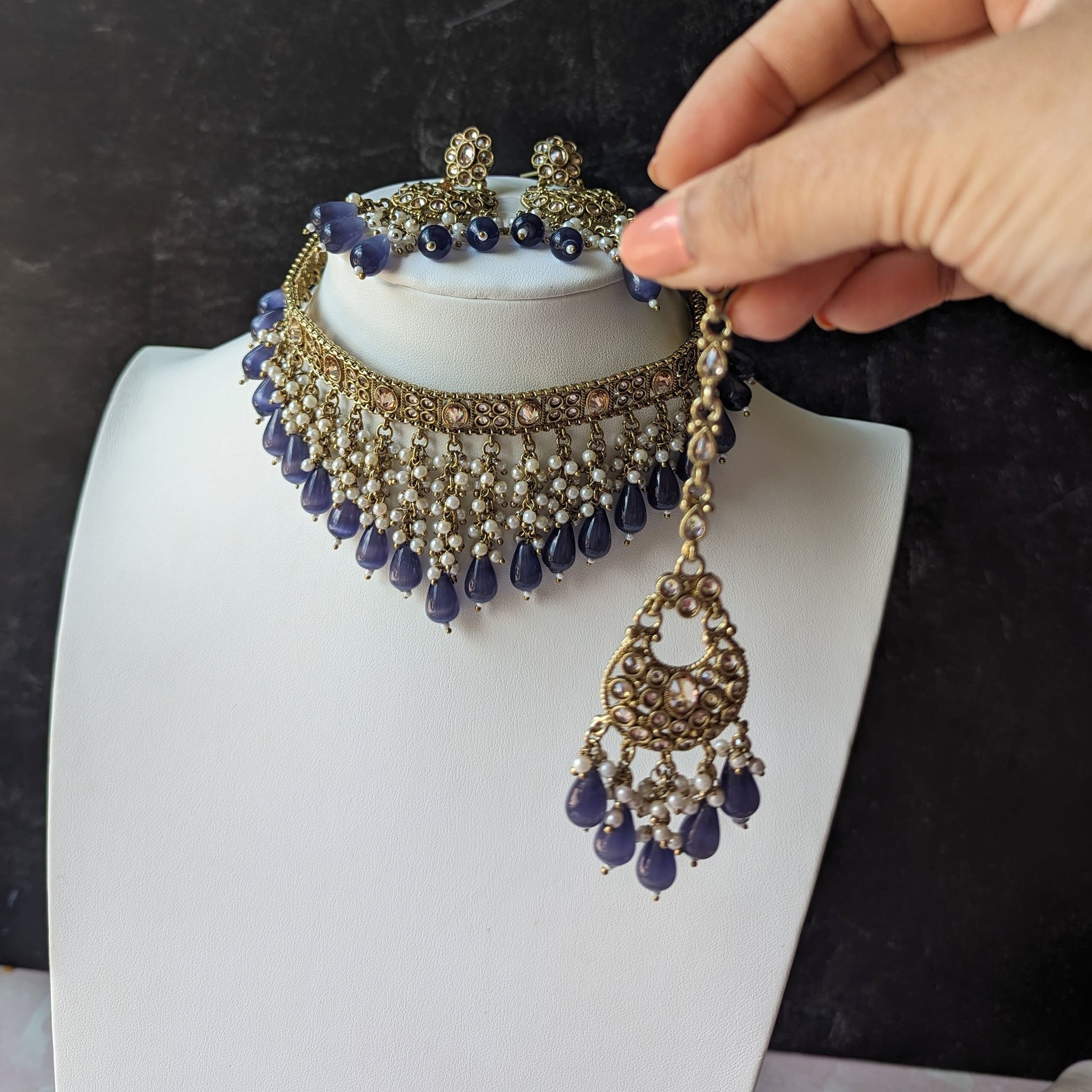 Comes with matching earrings and Mang Teeka.