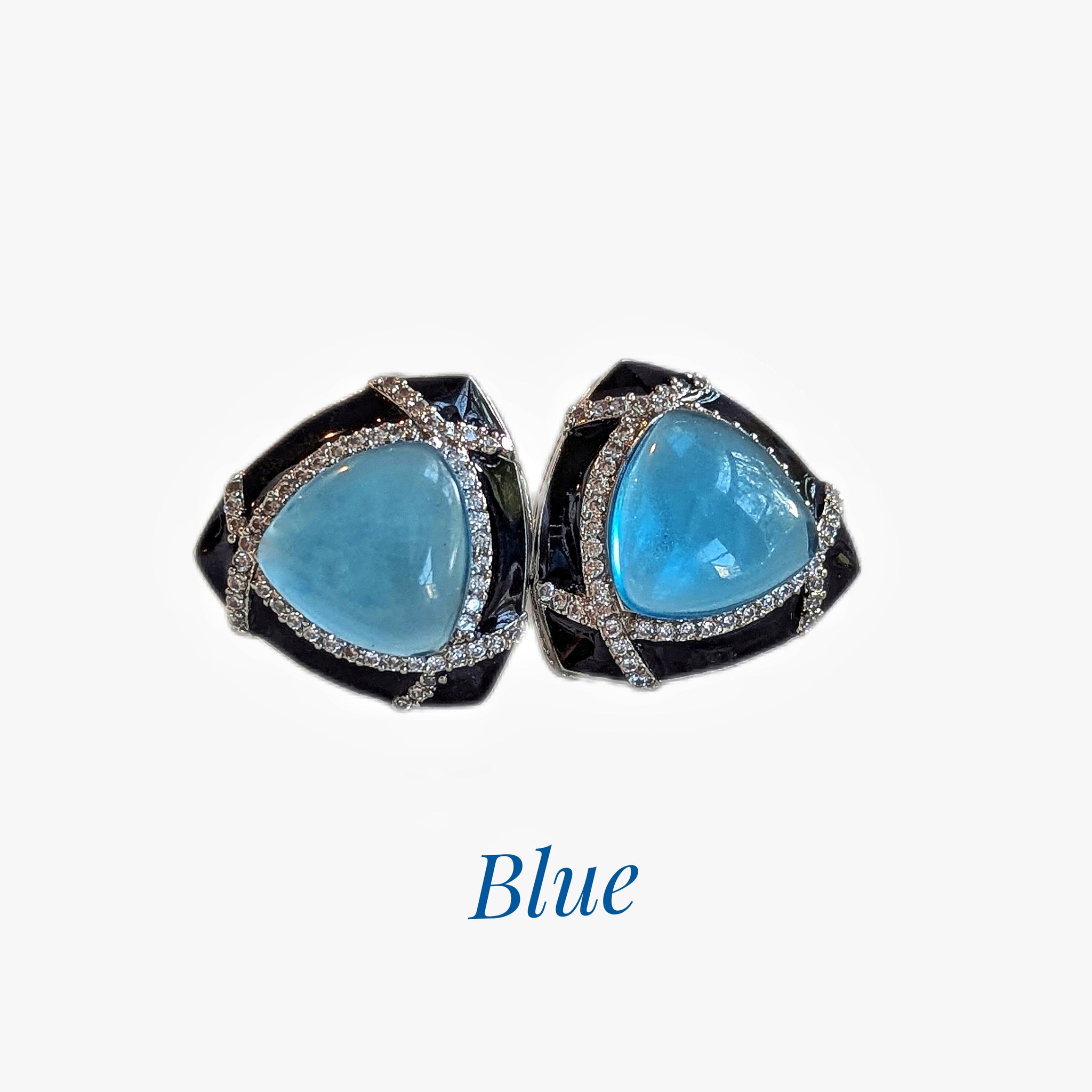 Elevate your festive look with these stunning stud earrings featuring doublet stones and sparkling CZ accents.