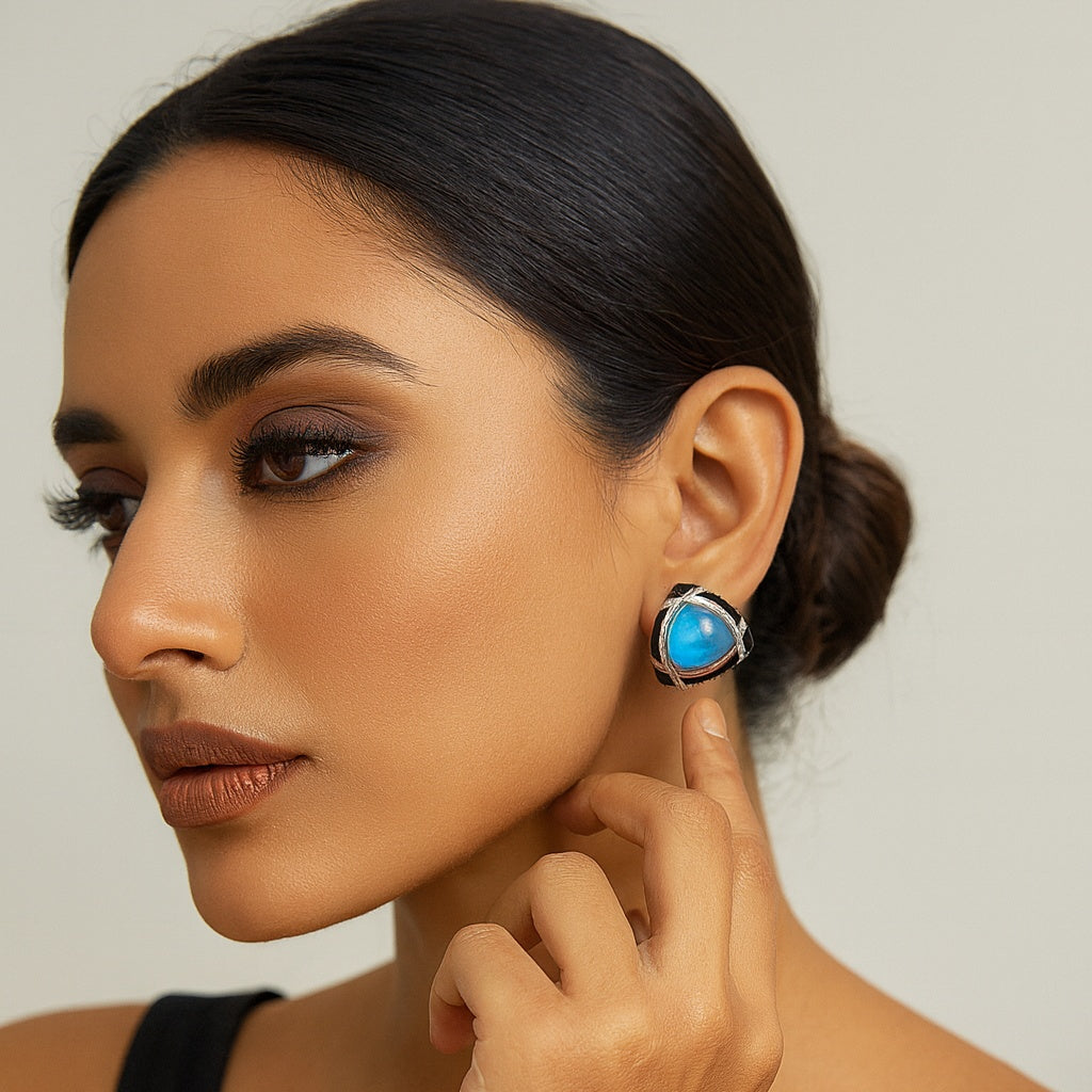Elevate your festive look with these stunning stud earrings featuring doublet stones and sparkling CZ accents. From Diwali celebrations to ringing in the New Year, these beauties are perfect for all the upcoming festivals. Specifications: Doublet stone, Cz...Read more